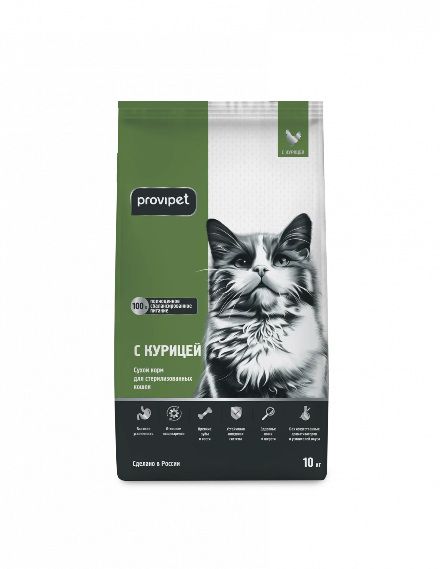 Корм Provipet для стерилизованных кошек с курицей, 10 кг